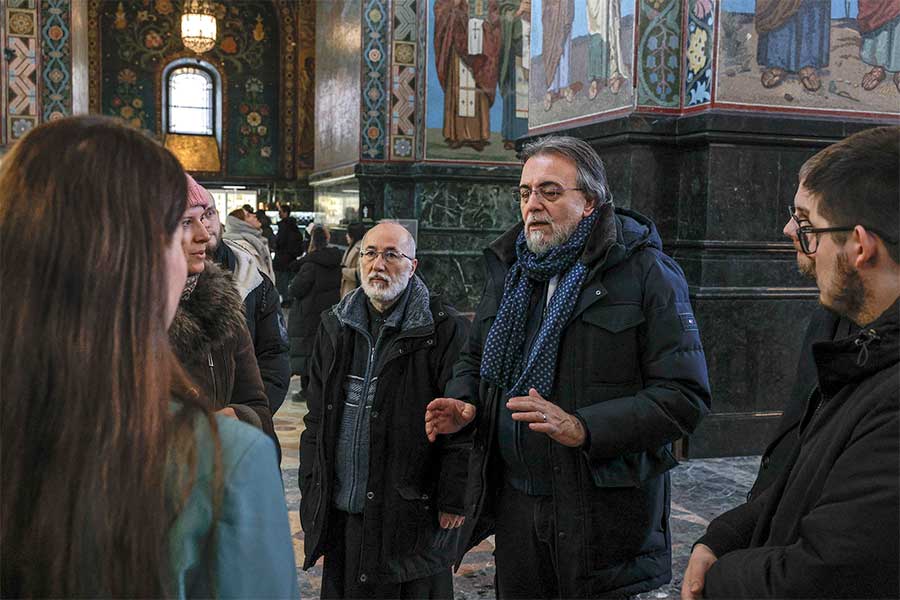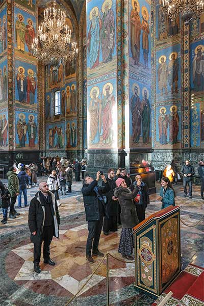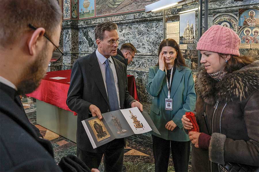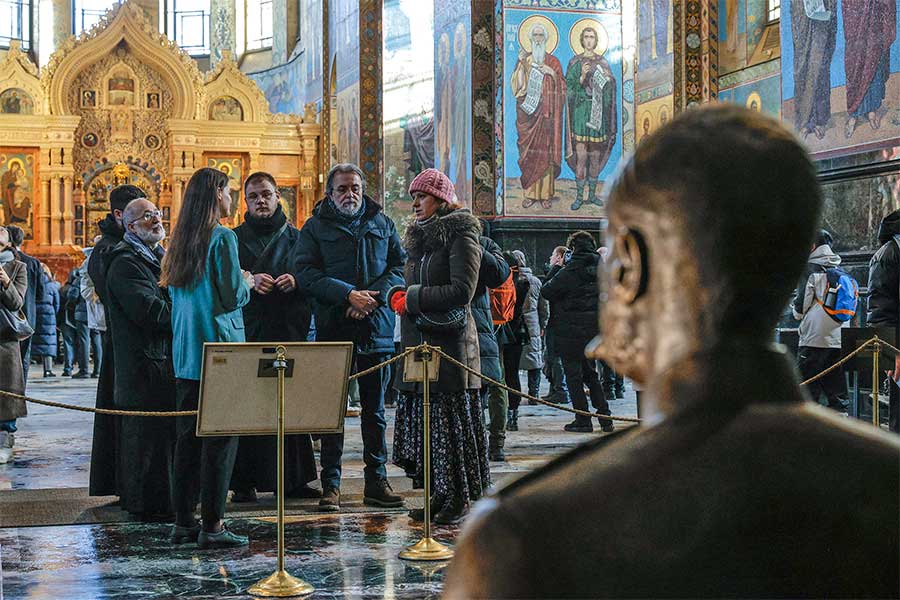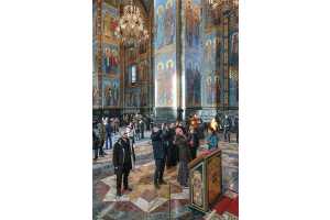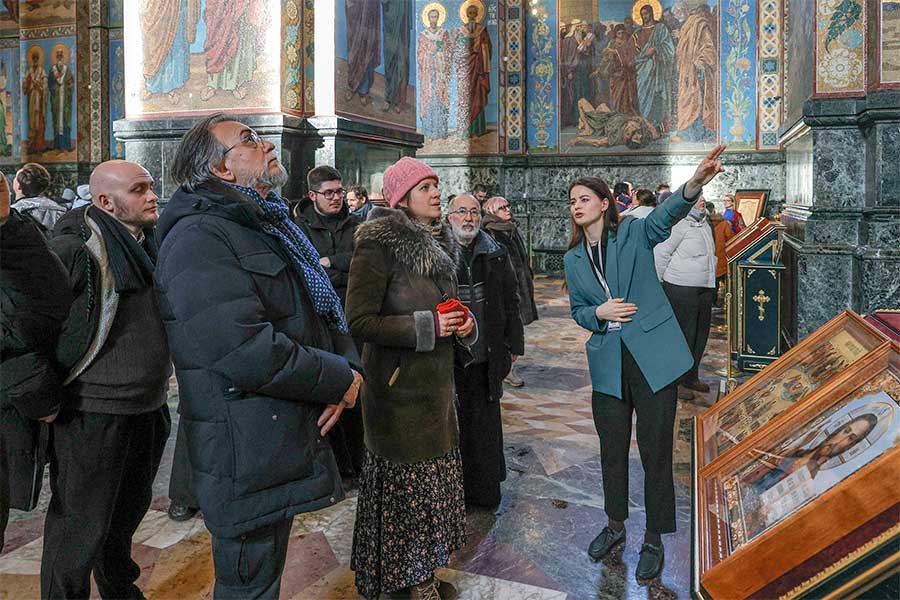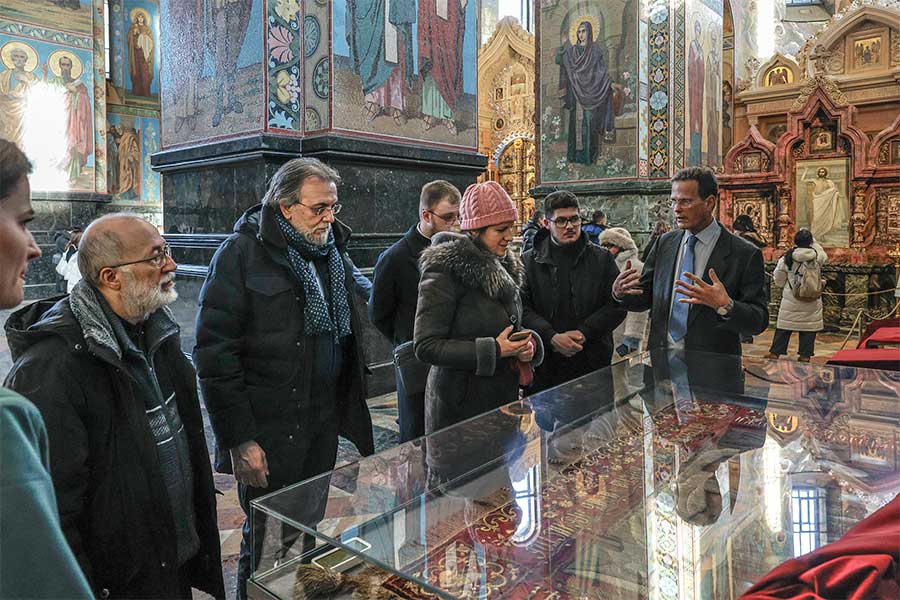 Для высоких гостей была организована подробная экскурсия по экспозиции музея, где они смогли детально ознакомиться с убранством храма-памятника. Особое внимание во время визита было уделено уникальному интерьеру храма Воскресения Христова. Гости осмотрели одну из крупнейших в Европе коллекций мозаики, полностью покрывающей стены храма, и узнали об истории его строительства на месте смертельного ранения императора Александра II, в год 145-летия трагической гибели царя-освободителя. Члены делегации поклонились памятному месту, связанному с трагическими событиями 1881 года, и ознакомились с современной жизнью собора.