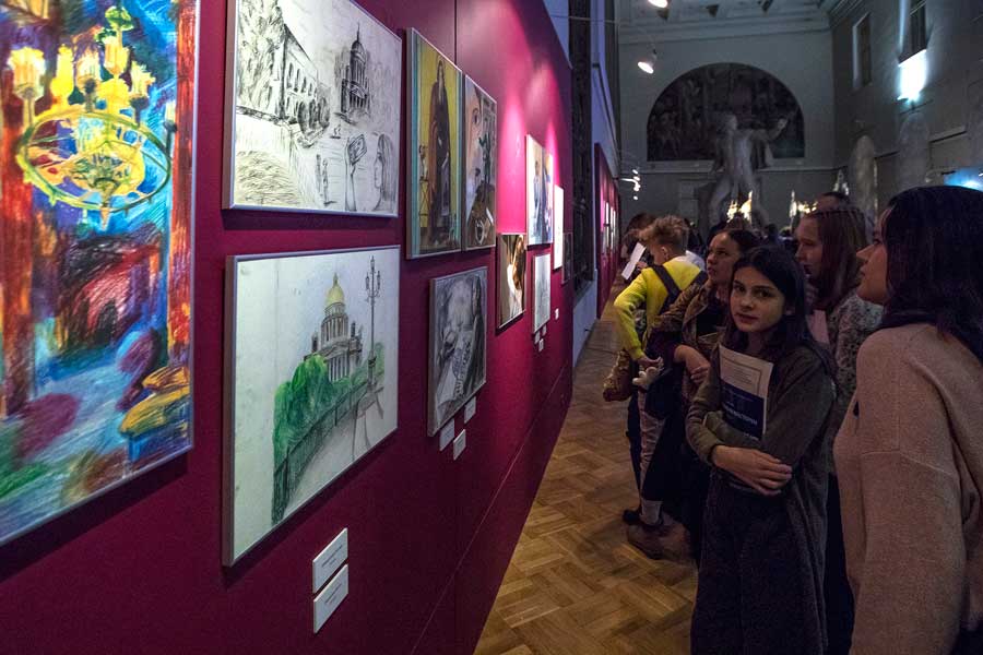 На выставке детских художественных работ «Гимн великим мастерам», посвящённой двухсотлетию Исаакиевского собора и приуроченной к проекту «Десятилетие детства», было представлено шестьдесят лучших работ участников акции 2018 года «Дети рисуют в храме», осуществленной Государственным музеем-памятником «Исаакиевский собор» совместно с некоммерческой организацией Международный фонд поддержки культуры «Мастер-класс».