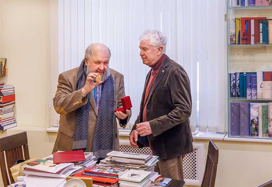 Встреча связана с отмечаемым в нынешнем году 240-летием великого зодчего и предполагаемым совместным культурным проектом. Гостям была вручена памятная медаль «Благотворителю», отчеканенная на Санкт-Петербургском Монетном дворе, с изображением Исаакиевского собора.