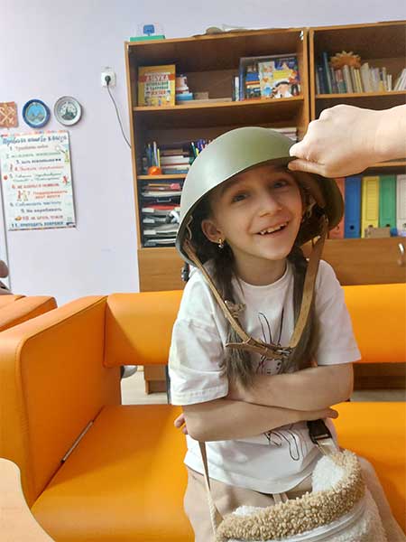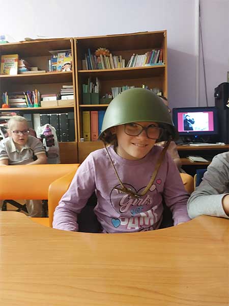 В завершение встречи дети с удовольствием примерили каску бойца МПВО.