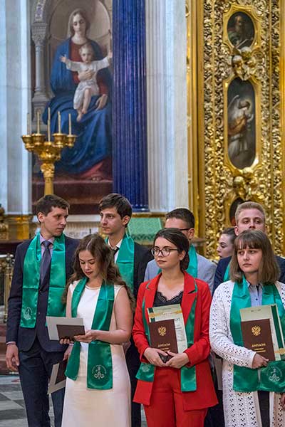 26 июня под сводами Исаакиевского собора представители Администрации Санкт-Петербурга, руководители крупнейших отечественных предприятий и учреждений, представители профессорско-преподавательского состава вручили дипломы с отличием лучшим выпускникам Петербургского государственного университета путей сообщения Императора Александра I. Место для проведения мероприятия выбрано не случайно. Исаакиевский собор можно назвать храмом искусства и науки, в котором гармонично соединились художественная и инженерная составляющие. Исаакиевский собор с момента своего основания всегда являлся государственным учреждением: его строительство и содержание осуществлялось на средства казны. На протяжении его более чем полуторавековой истории в соборе происходили значимые события. Эта традиция продолжается и в XXI веке.