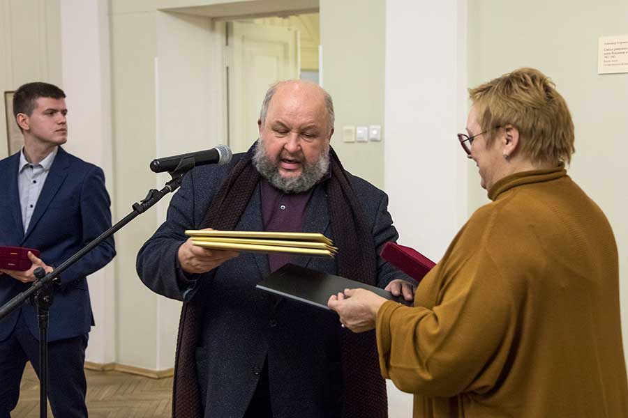 Директор музея-памятника «Исаакиевский собор» Ю. В. Мудров вручил памятные медали директору Новгородского государственного объединённого музея-заповедника Н. В. Григорьевой и епископу Юрьевскому, викарию Новгородской епархии Арсению.