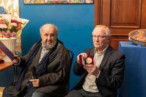 Юрий Витальевич вручил изготовленную специально по заказу Государственного музея «Исаакиевский собор» на Санкт-Петербургском монетном дворе медаль «Благотворитель» внуку и правнучке выдающегося художника-мозаичиста — Владимиру Александровичу Фролову и Анастасии Олеговне Мурзиной-Бенуа (директору Музея-квартиры Л. Н. Бенуа). Почетным гостям были вручены благодарственные письма за поддержку музейного выставочного проекта.