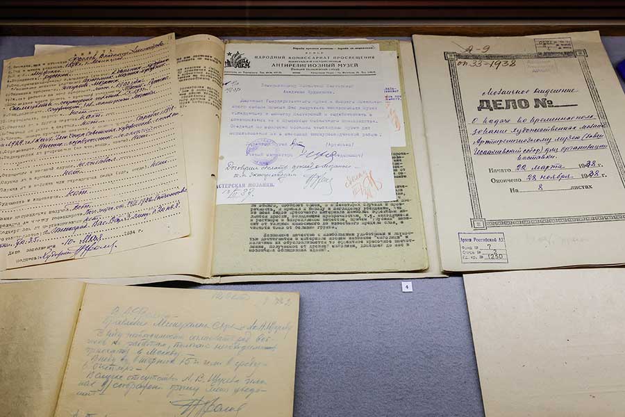 Заместитель директора по научной работе Государственного музея «Исаакиевский собор» Анна Викторовна Голованова рассказала об уникальности мозаичного убранства храма Воскресения Христова (Спас на Крови), выполненного в мастерской В. А. Фролова и полностью сохранившегося до наших дней, — ведь в 1930-е годы вопрос об уничтожении храма-памятника поднимался неоднократно. Анна Викторовна поделилась подробностями подготовки выставки «Мозаика судьбы» и поблагодарила партнеров проекта за отклик и поддержку. Подлинные документы и мозаики, исполненные В. А. Фроловым, предоставил Центр научных учреждений Российской академии художеств (Санкт-Петербургский филиал) — Научный архив РАХ и Мозаичная мастерская РАХ. Участником выставки стал Российский государственный исторический архив, передавший для экспонирования документы, повествующие об ученических годах Владимира Фролова.