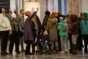 Первыми точками экскурсионного маршрута были Спас на крови и Исаакиевский собор. Сотрудники музея-памятника подтвердили свое умение работать с маломобильными группами населения (Данил из-за заболевания опорно-двигательного аппарата относится к этой категории посетителей). Экскурсии были познавательными и необременительными. Данил внимательно слушал, разглядывал окружающую красоту. Только вот подъем на колоннаду Исаакия пришлось прервать: с неба внезапно обрушился снего-дождевой заряд. Тут и простудиться недолго, а перед репетициями и выступлением в Эрмитажном театре 13 апреля надо поберечь голос. И все же посмотреть на город с птичьего полета Данил успел.