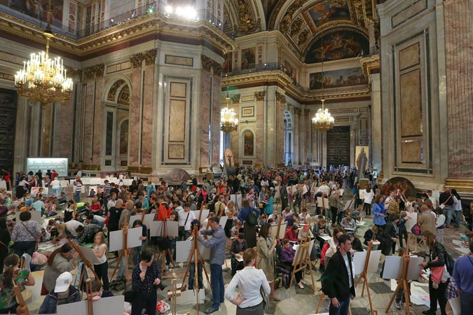 В Государственном музее-памятнике «Исаакиевский собор» прошла традиционная ежегодная акция «Дети рисуют в храме», проводимая музеем совместно с некоммерческой организацией «Международный фонд поддержки культуры «Мастер-класс». В этом году главной темой акции стало 70-летие Победы в Великой Отечественной войне.