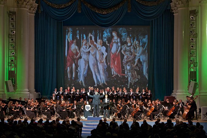 Кантата Карла Орфа «Кармина Бурана» прозвучала в исполнении Камерного хора Смольного собора под руководством заслуженного артиста Российской Федерации Владимира Беглецова, Государственного симфонического оркестра «Классика» и Детского хора телевидения и радио Санкт-Петербурга. Звучание кантаты сопровождалось необычным видеорядом с использованием живописных работ художников средневековья и эпохи Возрождения.