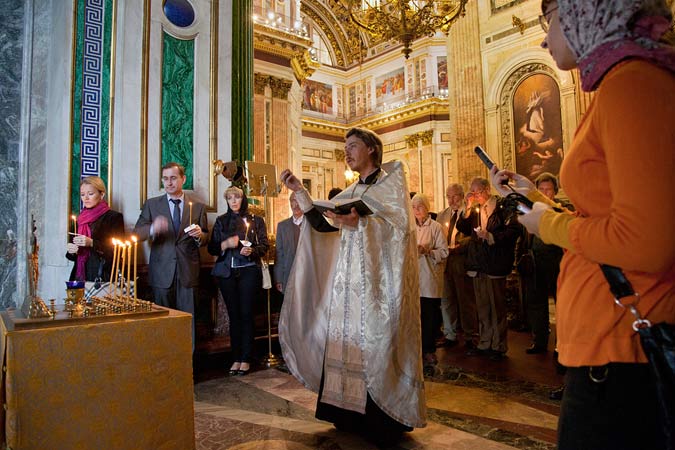 В год 90-летия со времени гибели поэта Николая Гумилева в приделе святого Александра Невского Исаакиевского собора была отслужена панихида.