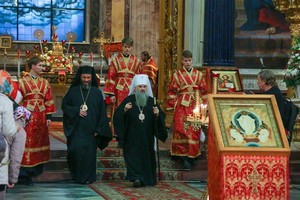 В Исаакиевском соборе митрополит Санкт-Петербургский и Ладожский Варсонофий совершил Божественную литургию и состоялось поздравление митрополита с праздником Пасхи духовенством епархии.