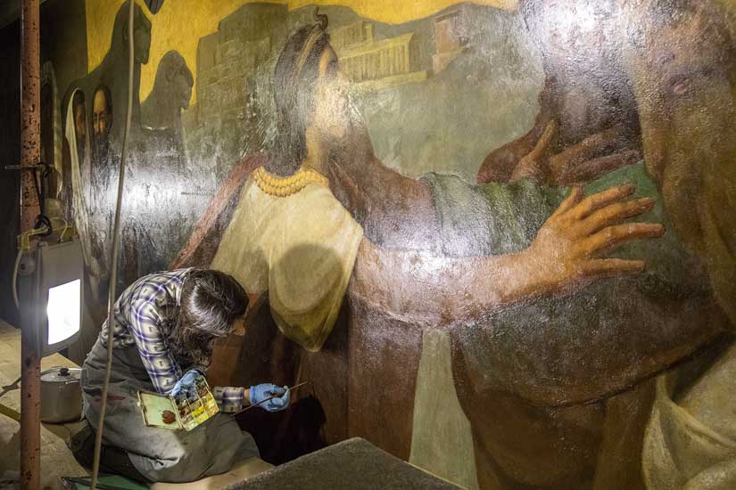 Сохранение монументальной живописи является одной из первостепенных задач музея. В первую очередь это создание и соблюдение благоприятных климатических условий, а также постоянное наблюдение и своевременные реставрационные работы с применением современных технологических процессов.