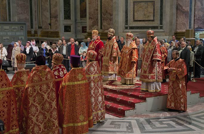 В Исаакиевском соборе была совершена божественная литургия в честь Дня Города. Ее совершил Митрополит Санкт-Петербургский и Ладожский Владимир, который в этот день отмечает и свой день рождения.