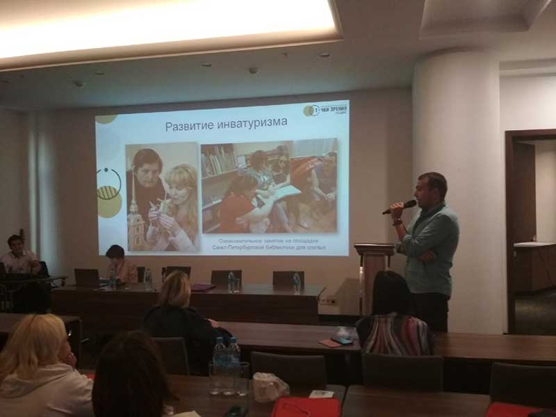 Методист сектора по работе с маломобильными посетителями Дарья Викторовна Чудотворова познакомила участников фестиваля со специальными экскурсионными маршрутами для слепых и слабовидящих «От ощущений к чувствам» и «Увидеть невидимое», реализуемыми в музеях-памятниках «Исаакиевский собор» и «Спас на Крови». Участники и эксперты фестиваля высоко оценили практику Государственного музея-памятника «Исаакиевский собор» и смогли расширить свои представления об интересных и доступных для незрячих и слабовидящих экскурсантов объектах.